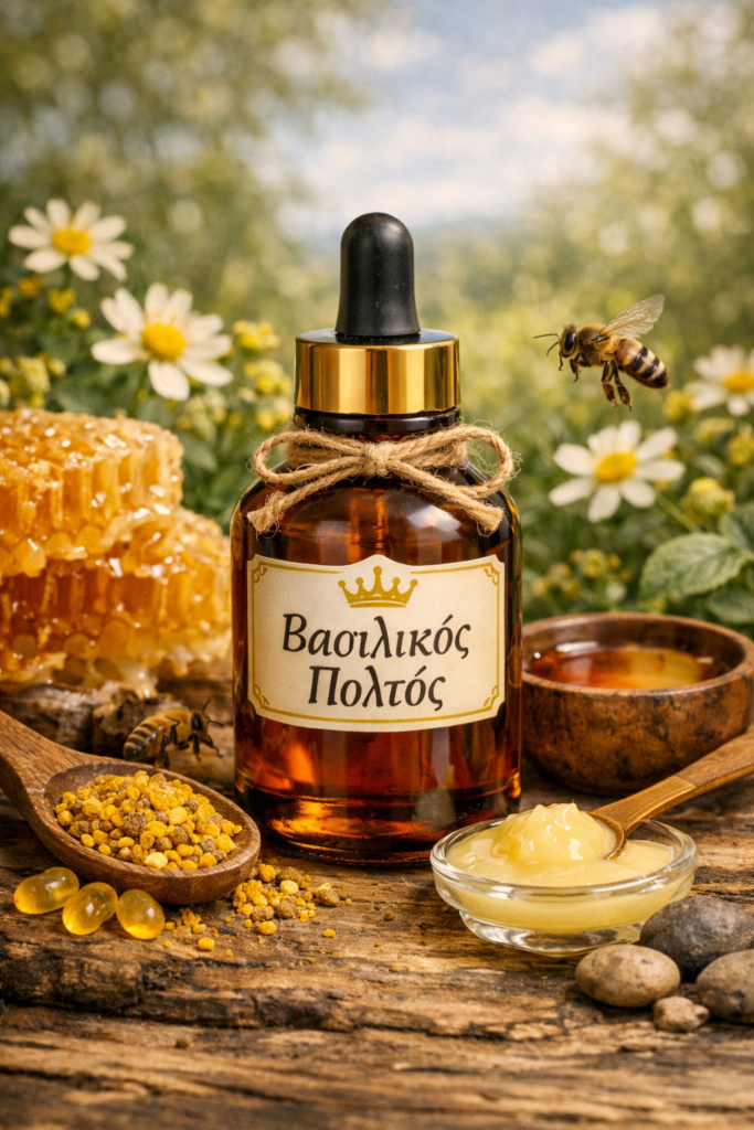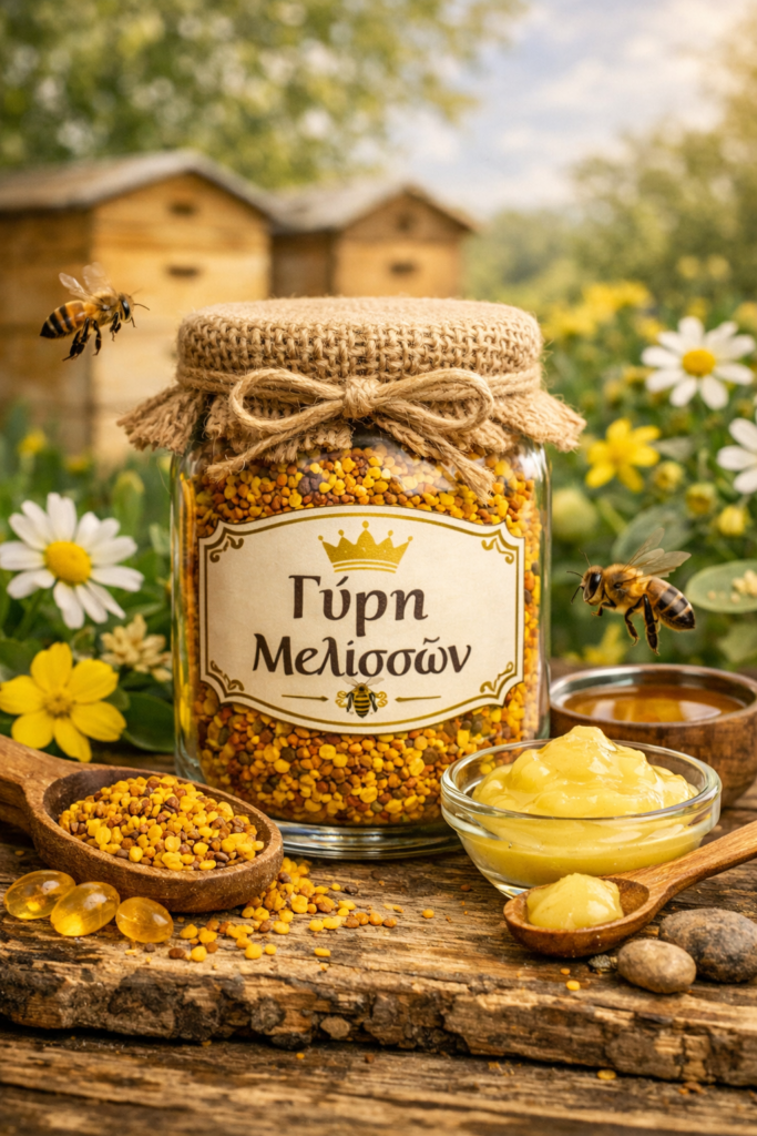 Υψηλής ποιότητας “μέλι – βαλσαμόλαδο – βασιλικός πολτός – γύρη – πρόπολη – κεραλοιφή – σαπούνια”