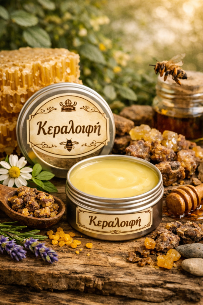 Το κερί μέλισσας οταν συνδυαστεί με ελαιόλαδο, δημιουργείται η κεραλοιφή, η οποία είναι ότι πιο αγνό και ωφέλιμο μπορείτε να προσφέρετε στο δέρμα σας.
